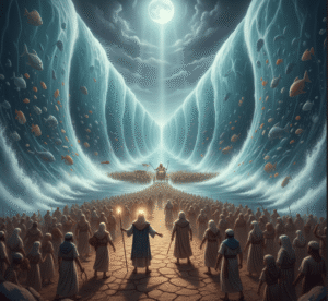 Pharaoh pursued with a great army, and the Israelites found themselves trapped between the soldiers and the sea.